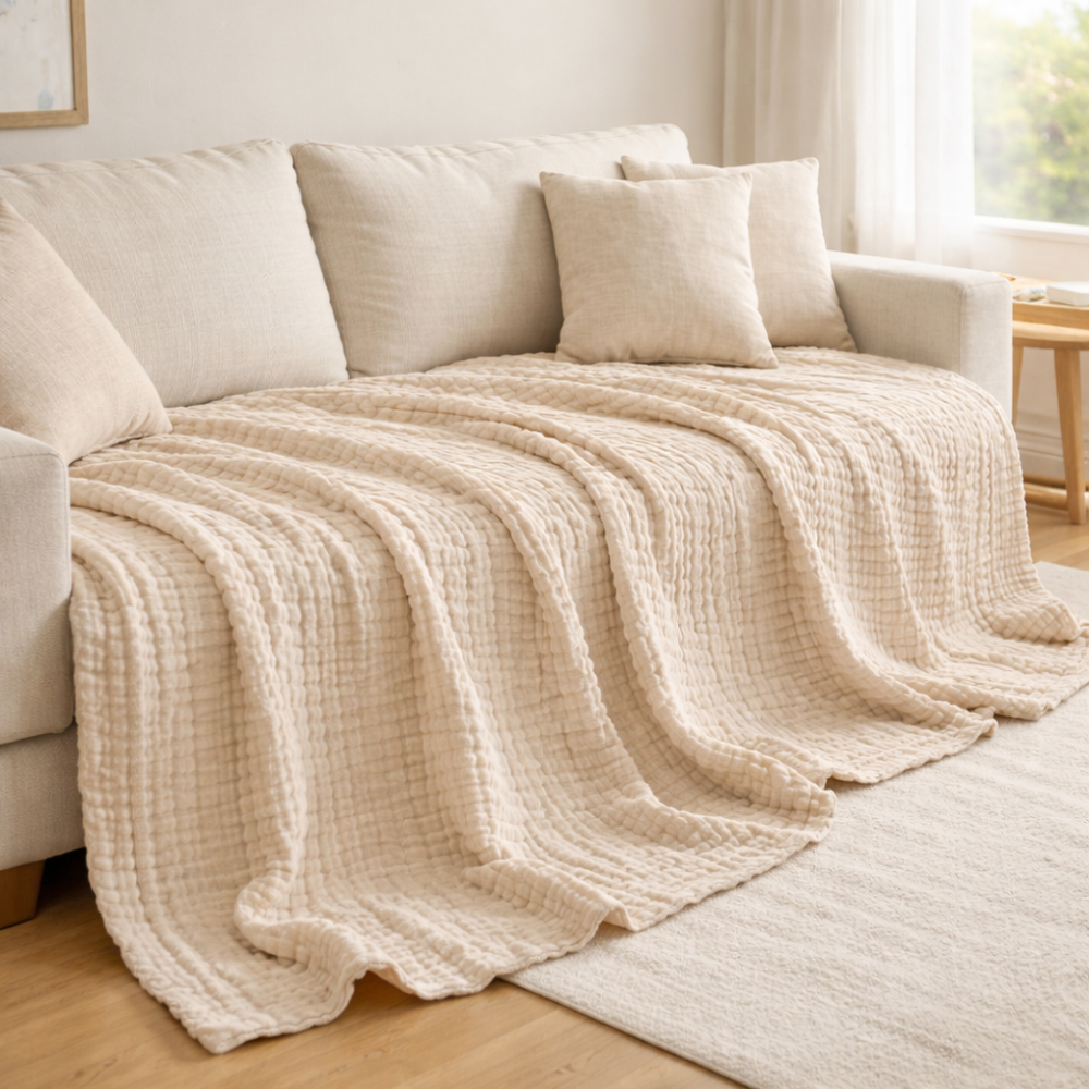 Experience the ultimate blend of comfort and style with our unique, breathable throw blanket. Designed for all seasons, its exquisite materials and thoughtful features set it apart, making your home warm and inviting.